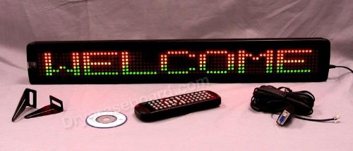 Cheap price deals Programmable Message Sign Tri Color 4H x 26L x 1D Indoor LED signs produce brilliant messages that cannot be ignored. Announce upcoming events, advertise sales, promote employee safety, or welcome VIPs, quality and health awareness programs. Create exciting moving messages to promote your specific events, update specials and communicate to the public . Get your message across in an inexpensive, eye-catching way with an affordable Indoor LED Scrolling sign. Scrolling function allows for viewing of multiple messages, such as monthly specials, business hours, contact information, targeted customer messages. These reliable LED signs can be left on and be operated for a long period of time. Size 4''H x 26''L X 1"D Bright Red, Green, Amber LED lights are eye catching and provide viewing distance up to 150 feet Program up to 99 Files at a time via Remote Control or PC Input between 500 - 700 words Low Energy Consumption 1 Year Warranty Accessories Included: Remote Control, Hanging Brackets, Software, PC Cable